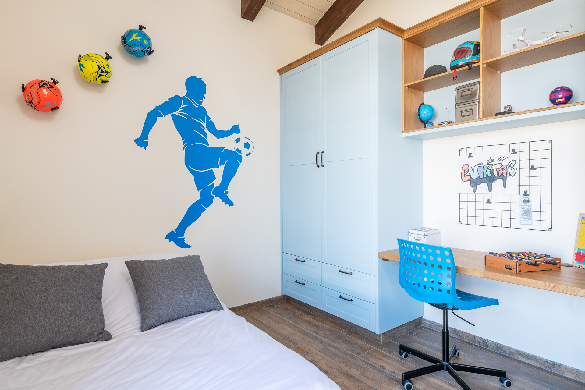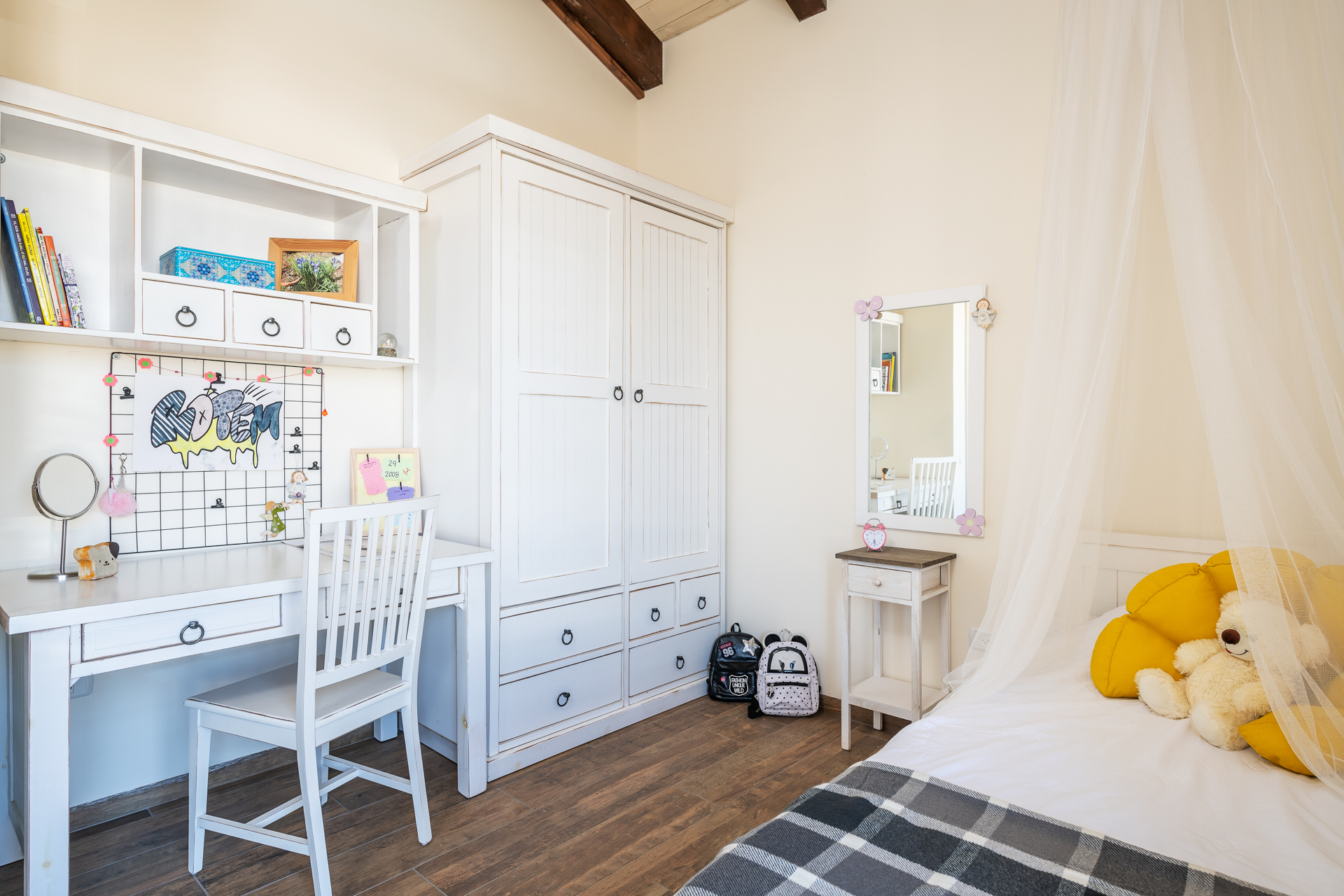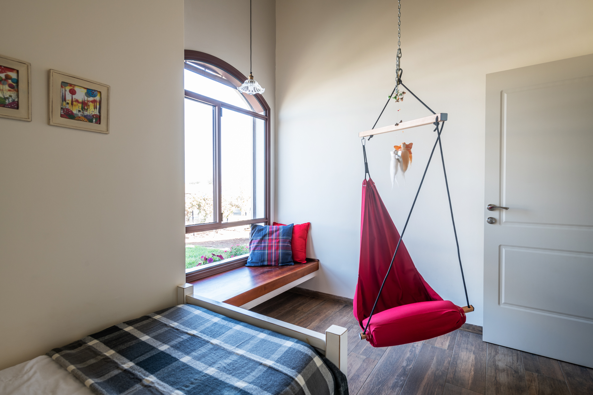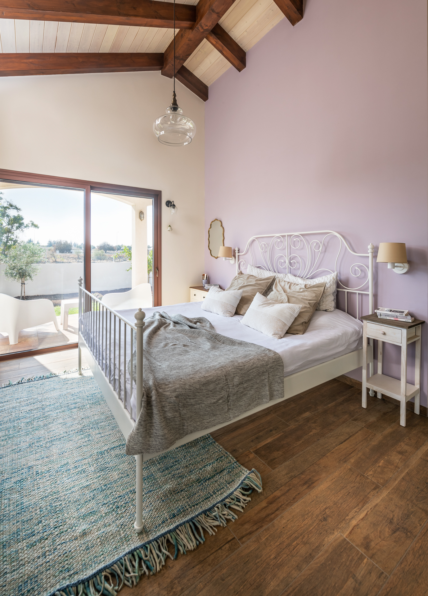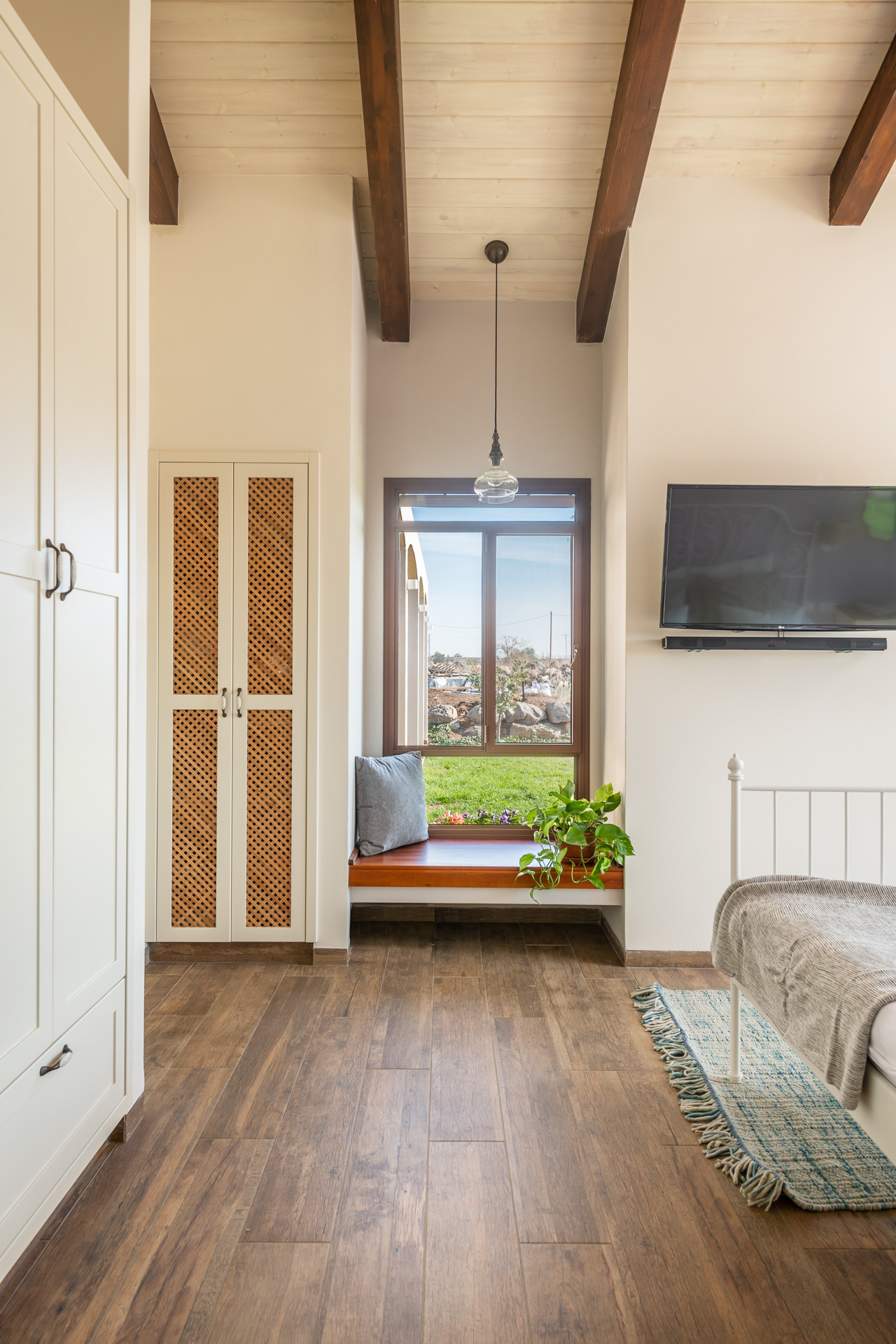 יחידת ההורים תוכננה בקצה המרוחק מחדרי הילדים כסוויטה מפנקת עם פרטיות הפונה לנוף.