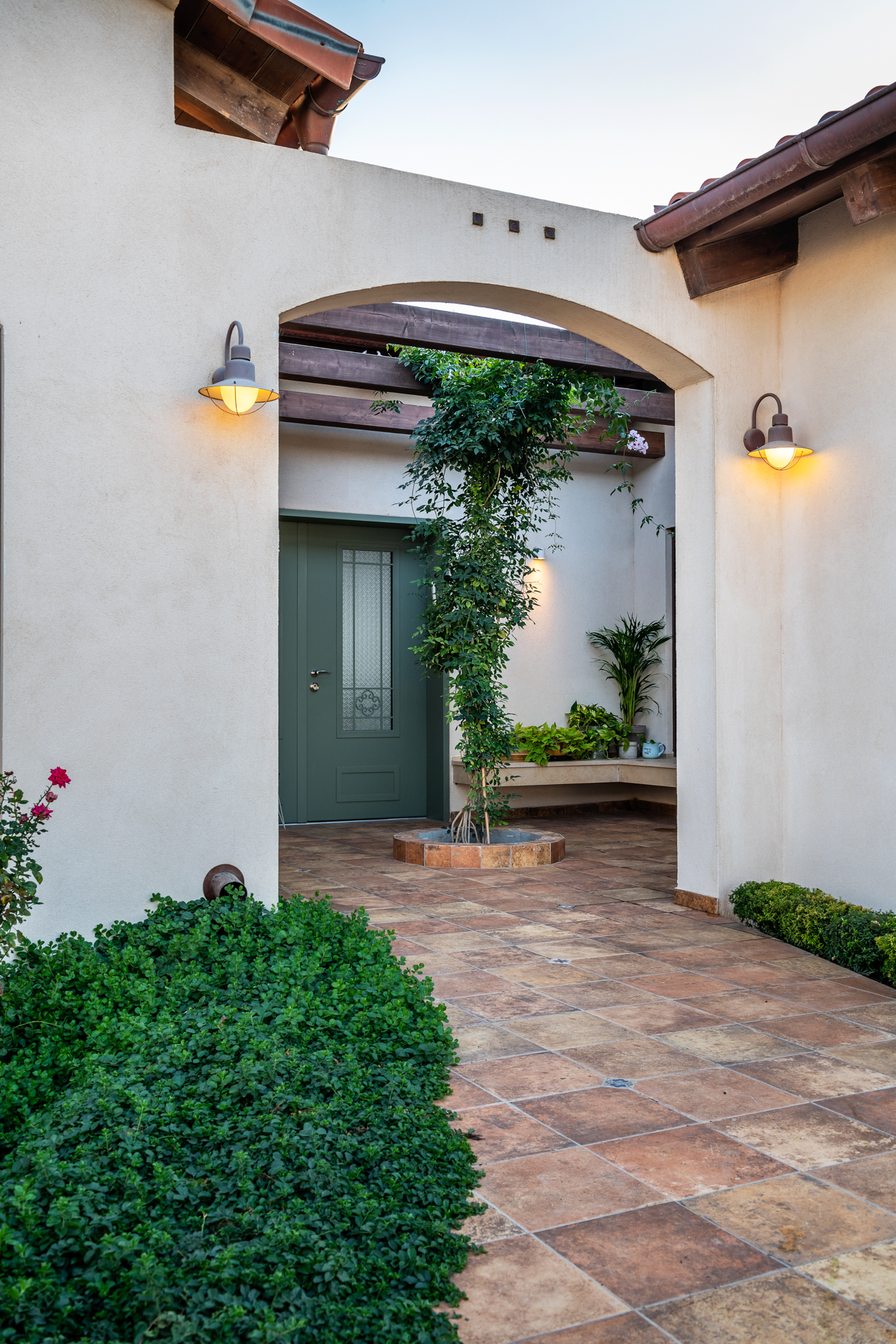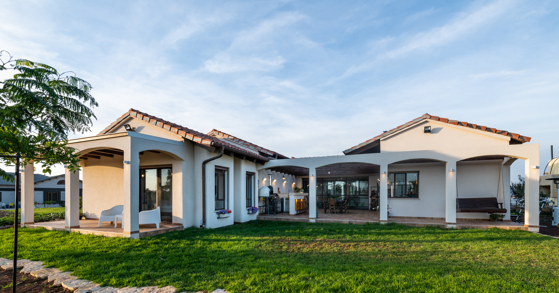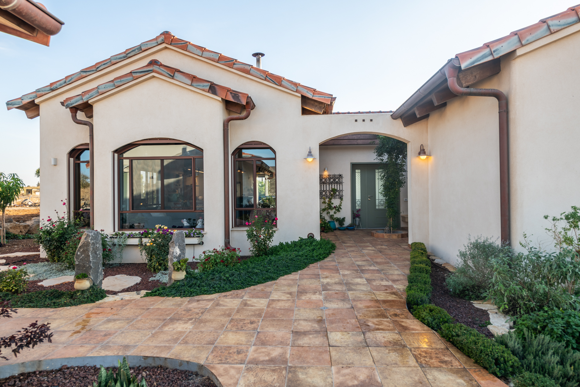 המחשבה מאחורי התכנון היתה בית שיזכיר להם את החופשות המשפחתיות ובחרנו לתכנן את הבית בסגנון אחוזה ספרדית.