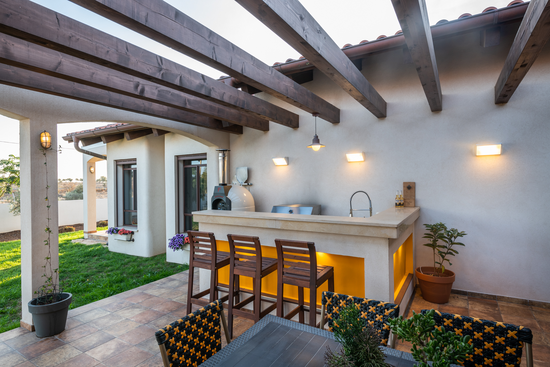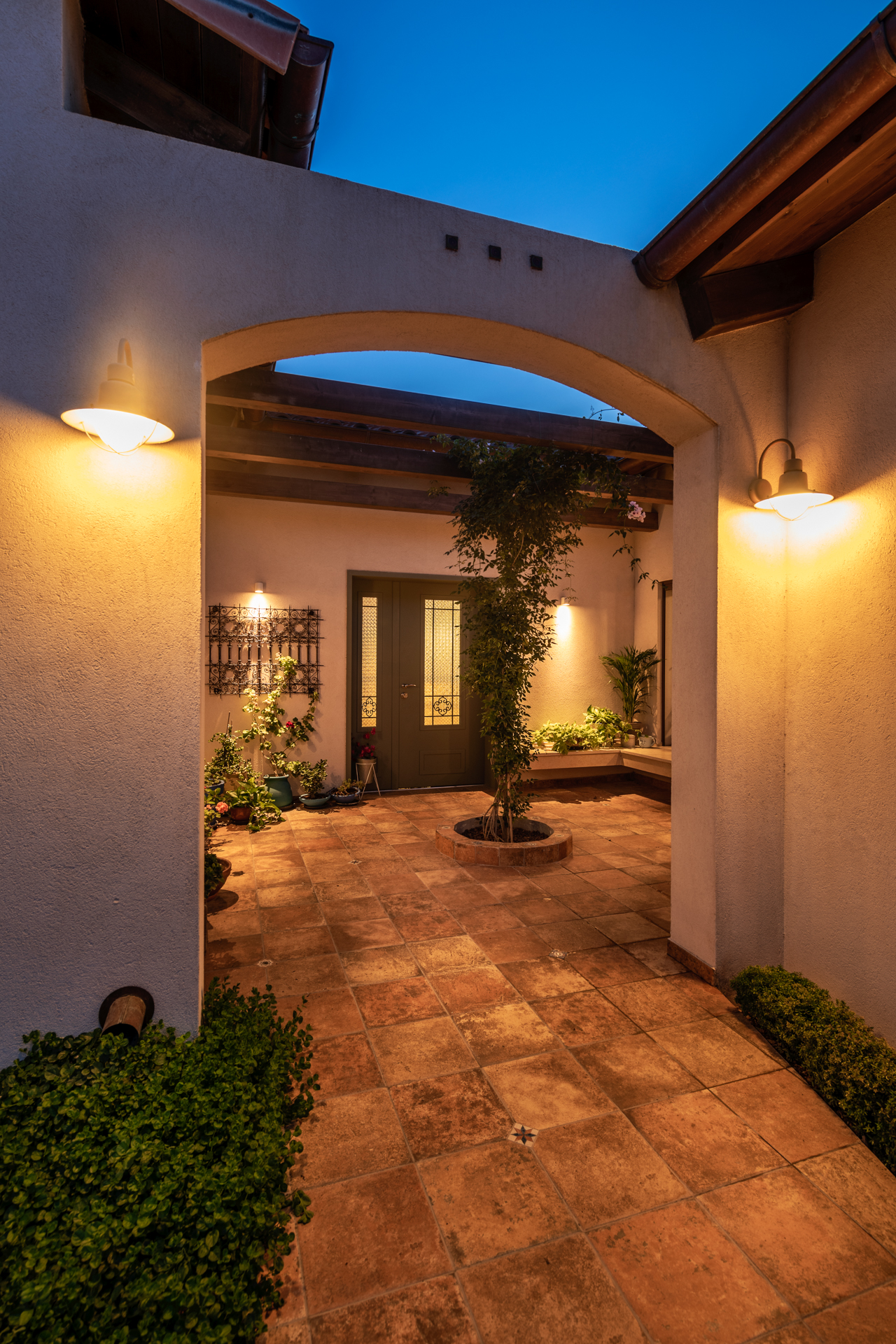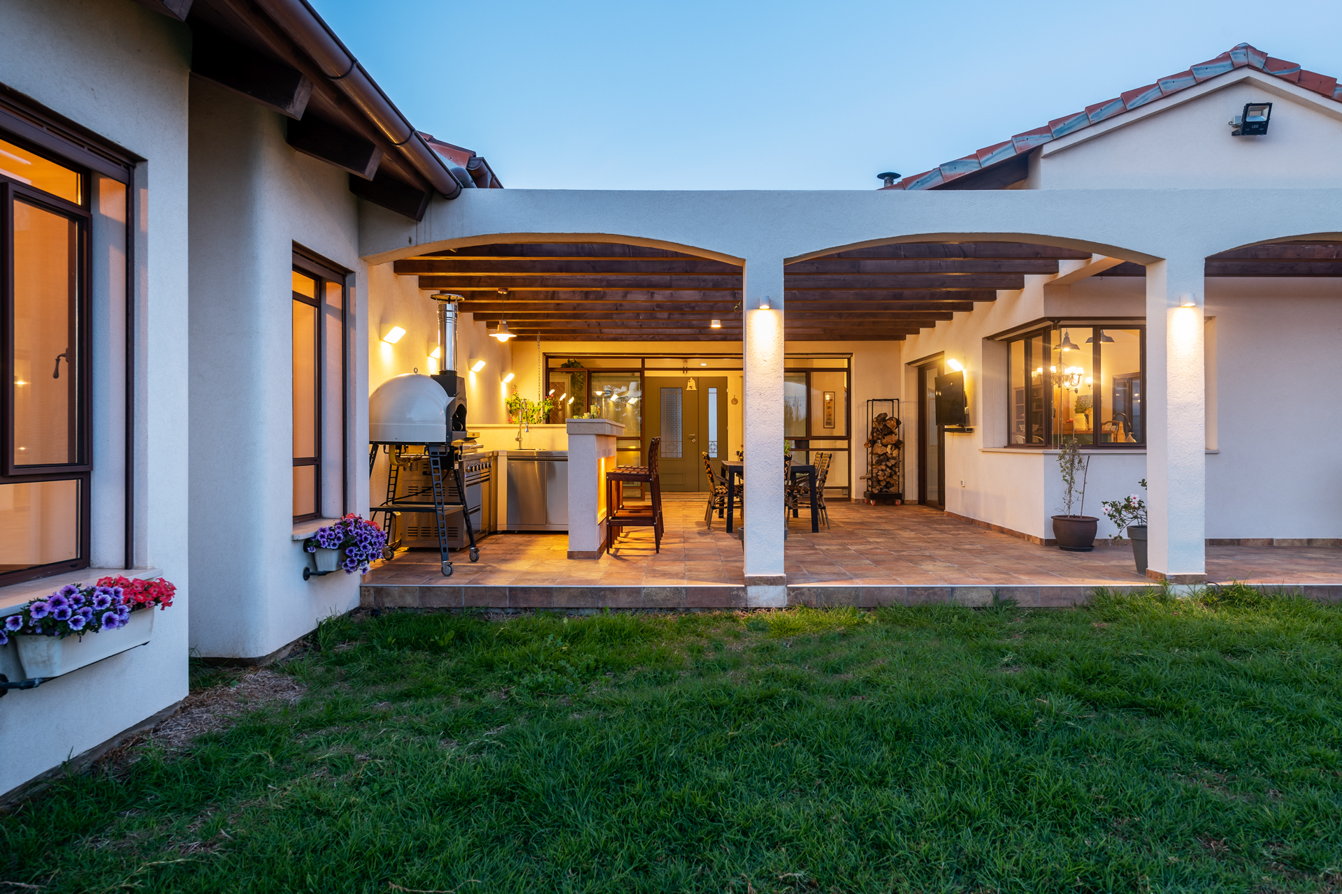 המחשבה מאחורי התכנון היתה בית שיזכיר להם את החופשות המשפחתיות ובחרנו לתכנן את הבית בסגנון אחוזה ספרדית.