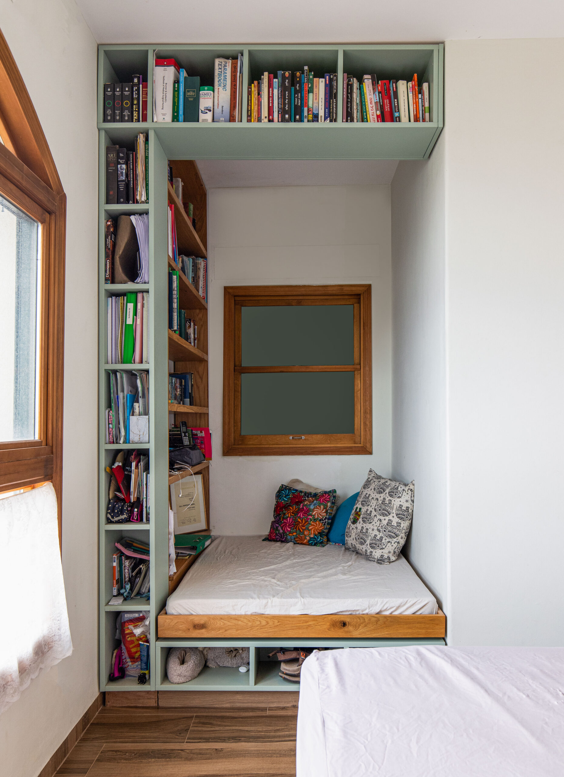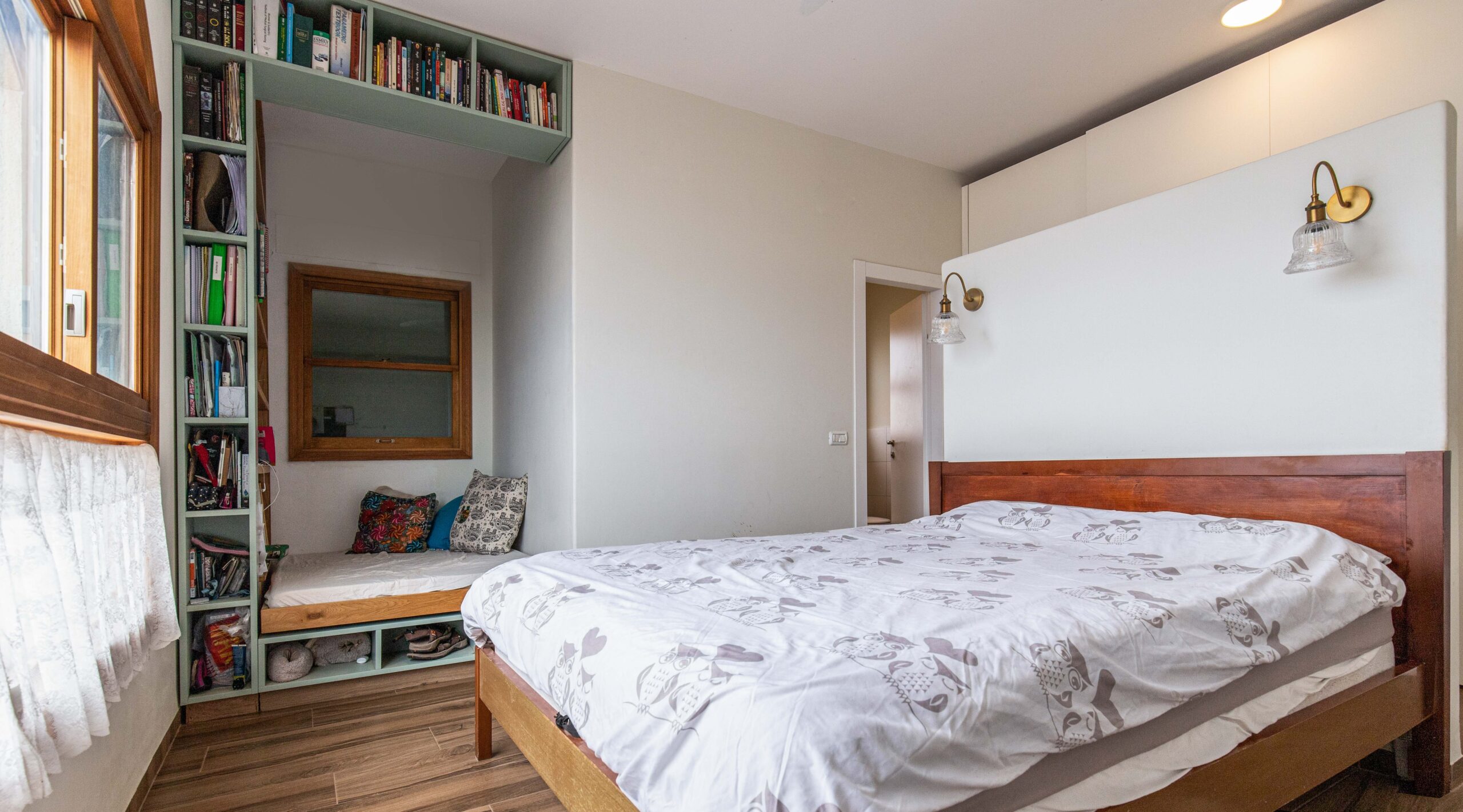 חדר הילדות תוכנן כחדר כפול ורחב כדי לאפשר חלל שינה ומשחק גדול שבהמשך הזמן יוכל להתפצל ולהפוך לשני חדרים נפרדים.